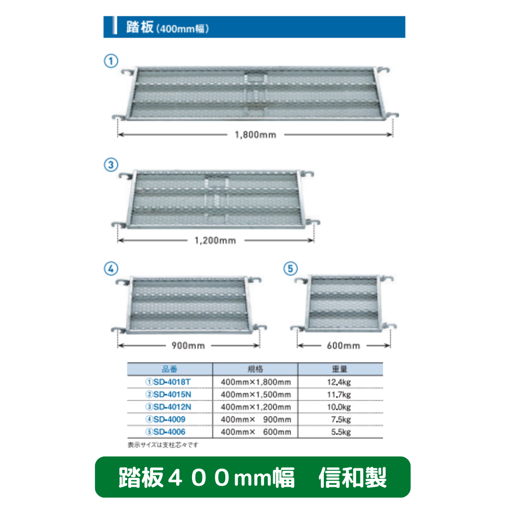 くさび緊結式足場のキャッチャーAタイプの信和社製の各種踏板の取り扱いがあります。